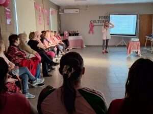 La actividad incluyó lecturas reflexivas y una suelta de globos en homenaje a todas las mujeres que enfrentan o han enfrentado la enfermedad. El recorrido finalizó en el Foro Cívico Cultural Municipal, donde se desarrolló la charla titulada “El poder de los hábitos: Prevenir para vivir mejor”, a cargo de la Dra. Alejandra Cucchietti. Durante su exposición, la profesional brindó consejos sobre la importancia de los hábitos saludables para la prevención y el bienestar integral.