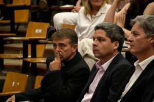 El acto también contó con mensajes de autoridades de la Iglesia. A través de un video, el cardenal Víctor “Tucho” Fernández destacó el sentido del reconocimiento: “Es particularmente significativo este Honoris. Su decisión de estar del lado de los más frágiles le traía dificultades, pero por eso mismo tiene bien merecida esta distinción. Que su testimonio sea una inspiración para ustedes”.