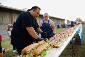 Uno de los momentos más esperados fue la elaboración de un sándwich de milanesa de 250 metros, realizado por la gestión municipal a la vista del público, que luego fue comercializado en porciones, generando una gran expectativa y participación por parte de los asistentes.