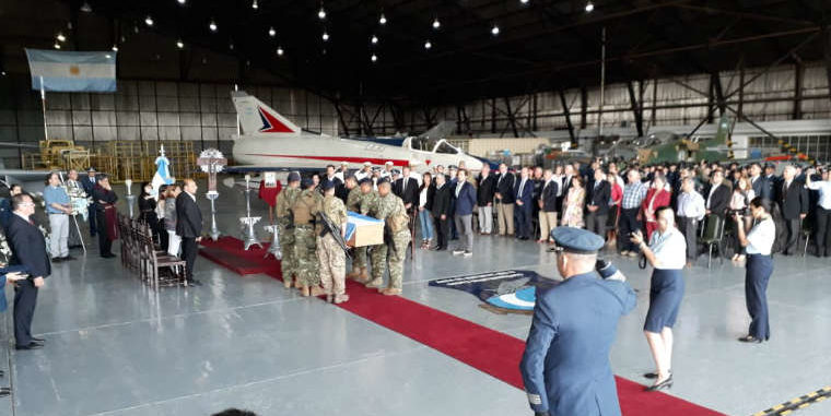 El vuelo para trasladar el cuerpo partió ayer a la mañana desde las Islas Malvinas, luego de una ceremonia realizada por las autoridades británicas, informó la Fuerza Aérea Argentina. Alrededor de las 19, los restos arribaron a la ciudad y hoy se realizará un homenaje con honores militares.