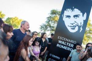 Durante el acto también se descubrió un tótem lumínico que acompañará el escenario y se entregó a la familia una plaqueta recordatoria en nombre de la Provincia de Córdoba . La emoción fue compartida por su entorno más cercano. Adriana Aguirre , hermana del músico, expresó su agradecimiento a la comunidad y sostuvo que el homenaje significa eternidad para Walter y para quienes continúan escuchando su música , asegurando que “ el amor de la gente no se olvida” .