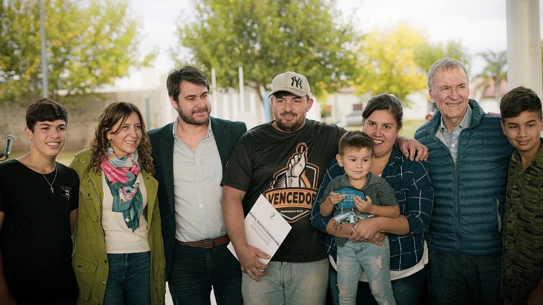 El gobernador de Córdoba, Juan Schiaretti, entregó este lunes a sus adjudicatarios 10 viviendas e inauguró un polideportivo social en la localidad de Sampacho.