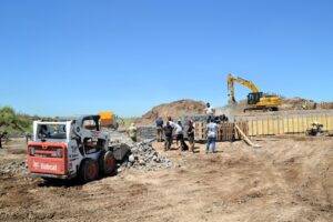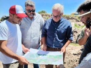 En cuanto a la protección de la costa, el proyecto contempla la colocación de colchonetas de piedra y gaviones confeccionados con hierro galvanizado, rellenos manualmente con piedras provenientes de la zona de Los Cóndores. “Es una laguna que no puede subestimarse. Ya rompió en varias oportunidades, por eso se trata de una obra de gran envergadura y cuidadosamente estudiada”, remarcó Foglino, señalando que el proyecto fue elaborado por técnicos del área de Recursos Hídricos de la Provincia, bajo cuya supervisión se ejecutan los trabajos.